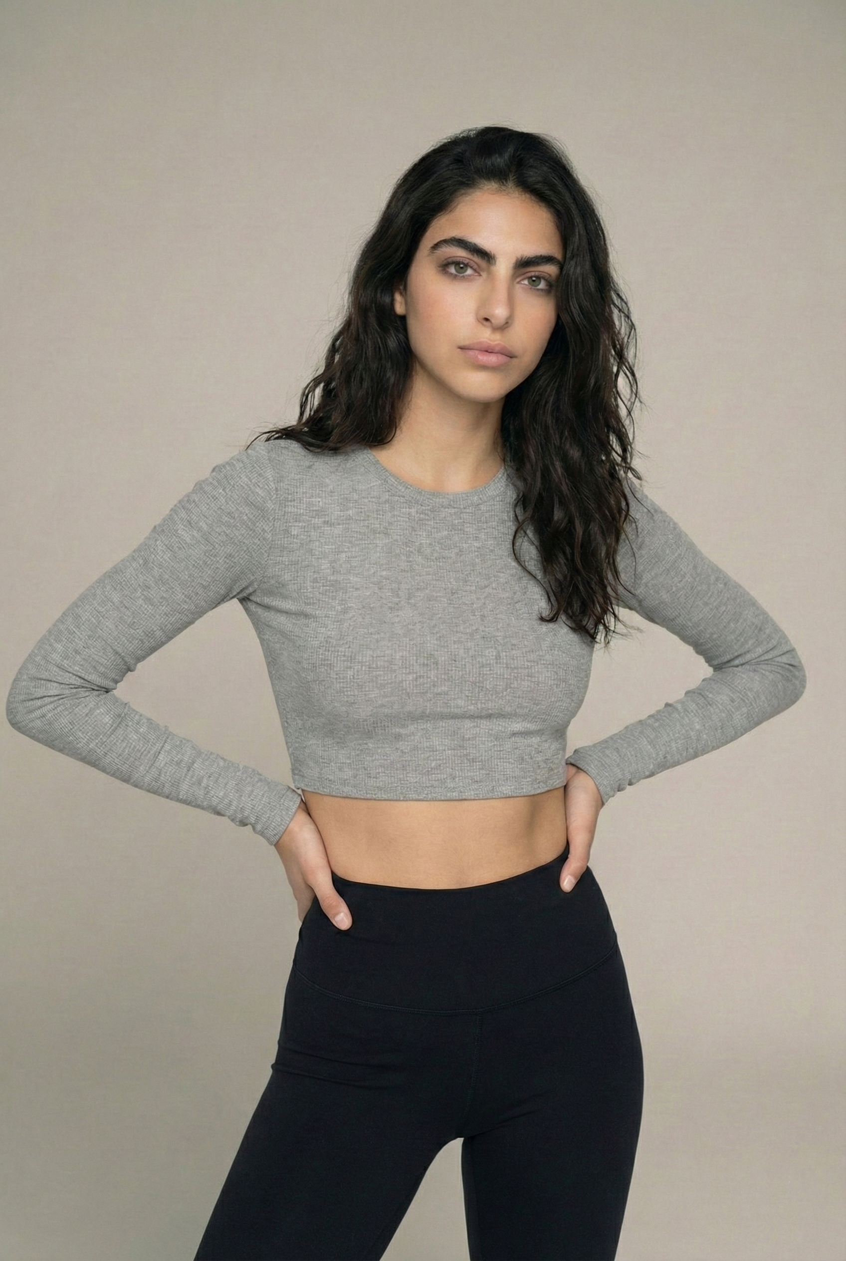 Welcome to The Comfort Zone. חולצת שרוול ארוך בגזרת קרופ מתוחכמת. עשויה מבד ריב גמיש ונעים, והיא הבחירה המושלמת לשכבה ראשונה או לפריט בפני עצמו, לתחושת חמימות וסטייל.