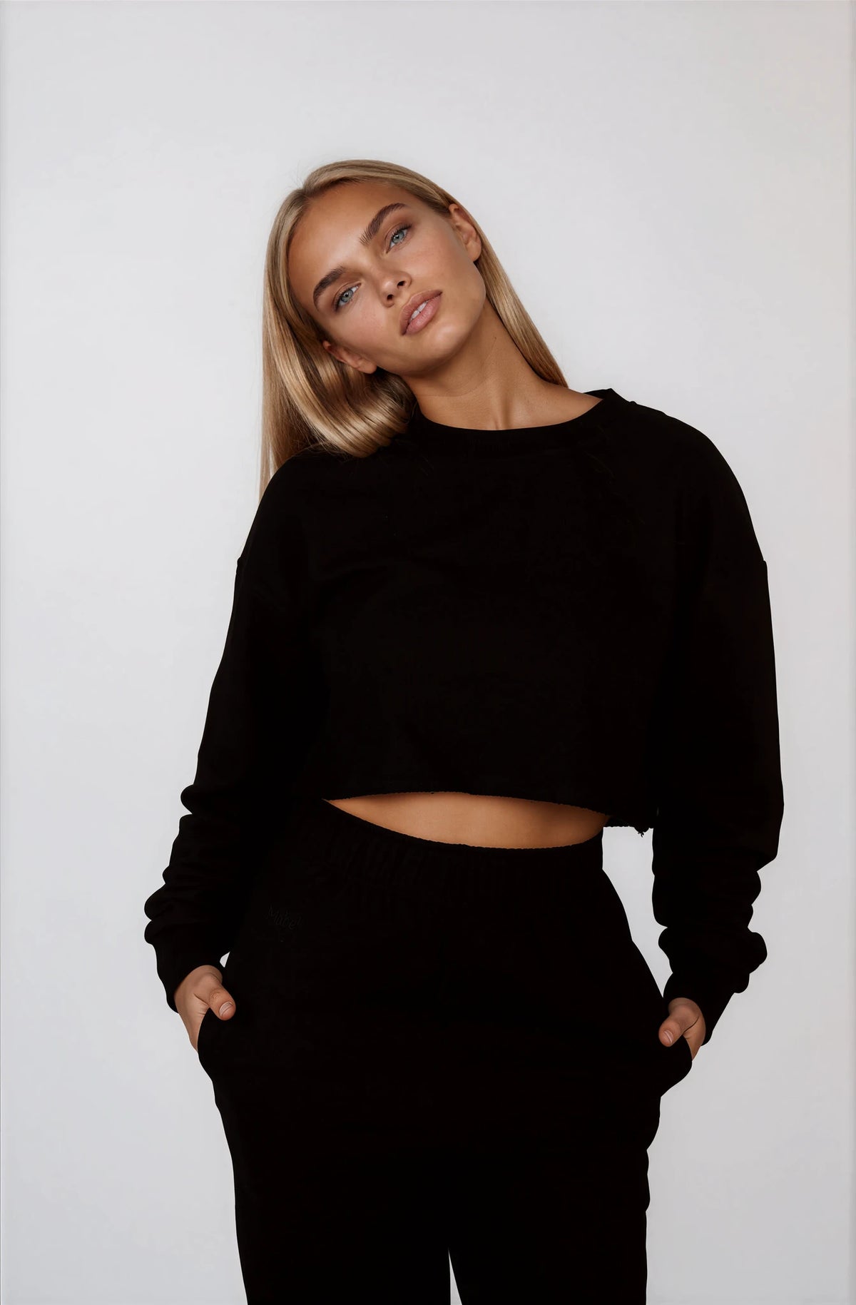 Welcome to The Comfort Zone. חולצת פוטר בגיזרת קרופ, שנועדה ליצור לוק שכבות אולטימטיבי. מבד פוטר עבה ורך במיוחד, היא הכי סטייל מעל לטופ או חולצת קרופ שרוול ארוך.